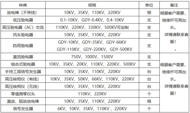 驗電器規(guī)格表