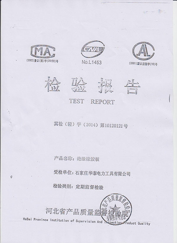 我公司的絕緣膠墊嚴(yán)格按照國家標(biāo)準(zhǔn)(HG2949-1999《電絕緣橡膠板》)生產(chǎn)標(biāo)準(zhǔn)來生產(chǎn),工頻耐壓達(dá)到國家上成膠墊標(biāo)準(zhǔn)要求,有國家第三方檢測報(bào)告。