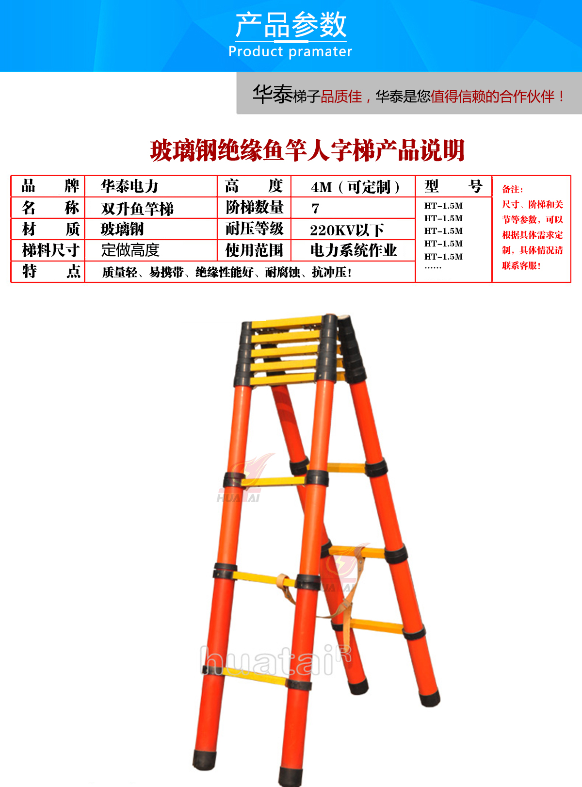 魚竿人字梯 3米、4米、5米 玻璃鋼  220kv