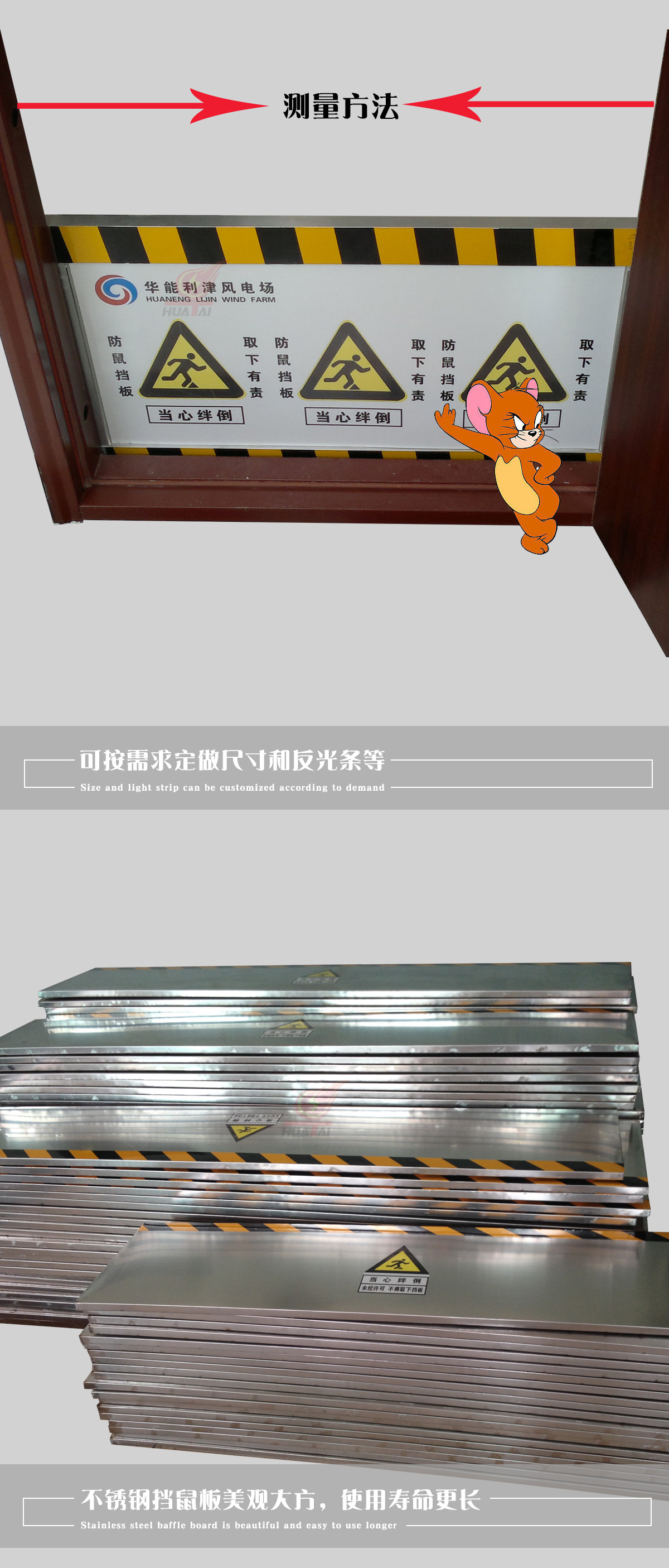 4.擋鼠板的高度常規(guī)尺寸為50厘米,寬度可根據(jù)客戶要求制作。