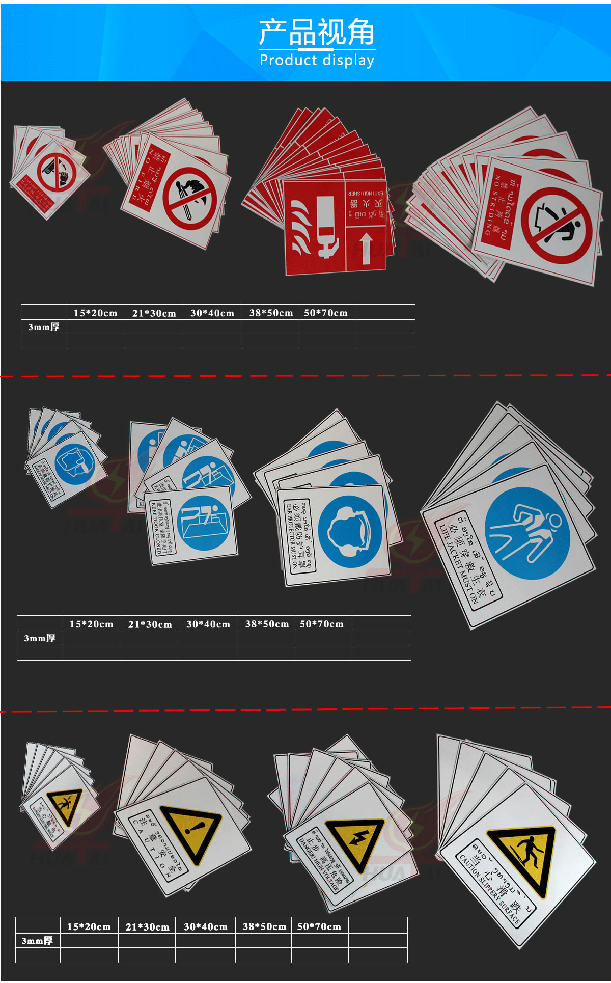 1.指示類PVC材質(zhì)安全警示牌:通常為圓形和矩形,藍底白色圖案。用于指示車輛和行人按規(guī)定方向、地點行駛。如直行、左轉(zhuǎn)、右轉(zhuǎn)、停車、繞行等。