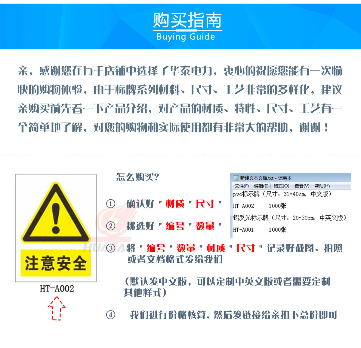 1.指示類PVC材質(zhì)安全警示牌:通常為圓形和矩形,藍底白色圖案。用于指示車輛和行人按規(guī)定方向、地點行駛。如直行、左轉(zhuǎn)、右轉(zhuǎn)、停車、繞行等。